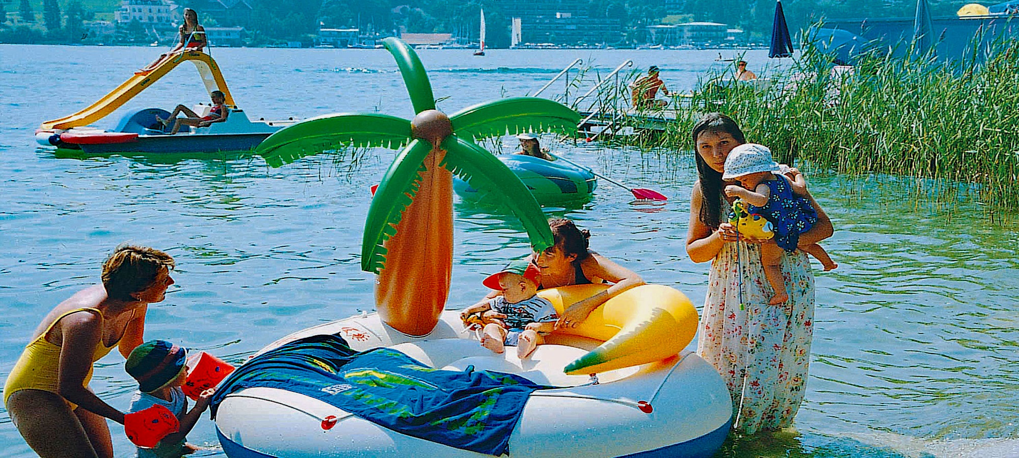 Der Lieblingsplatz der Jüngsten ist natürlich der Spielplatz – fragt sich nur welcher, denn es gibt gleich vier davon – mit Rutschen, Schaukeln, Trampolin und Sandkisten. Einer davon ist sogar ein Wasserspielplatz mit einem riesigen Wassertrampolin samt Wasserpyramide direkt vor BARRY‘s Strand im kristallklaren Wasser des Wörthersees.